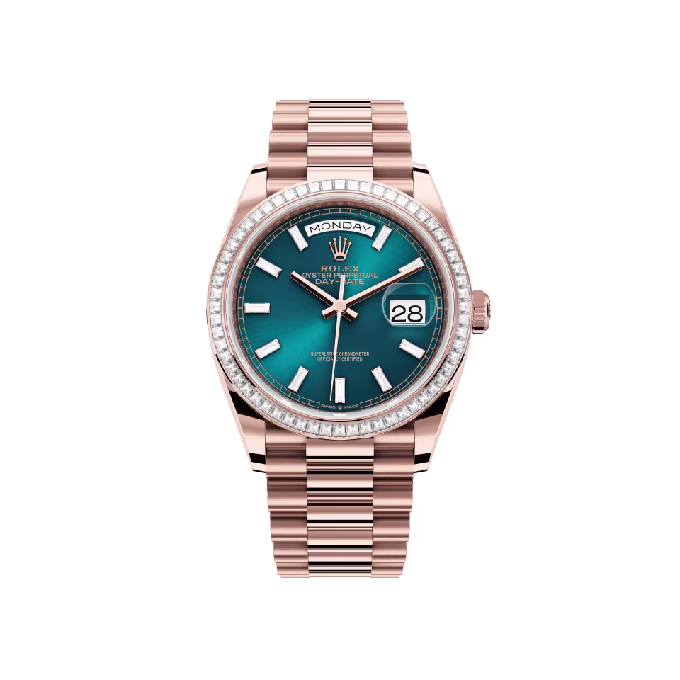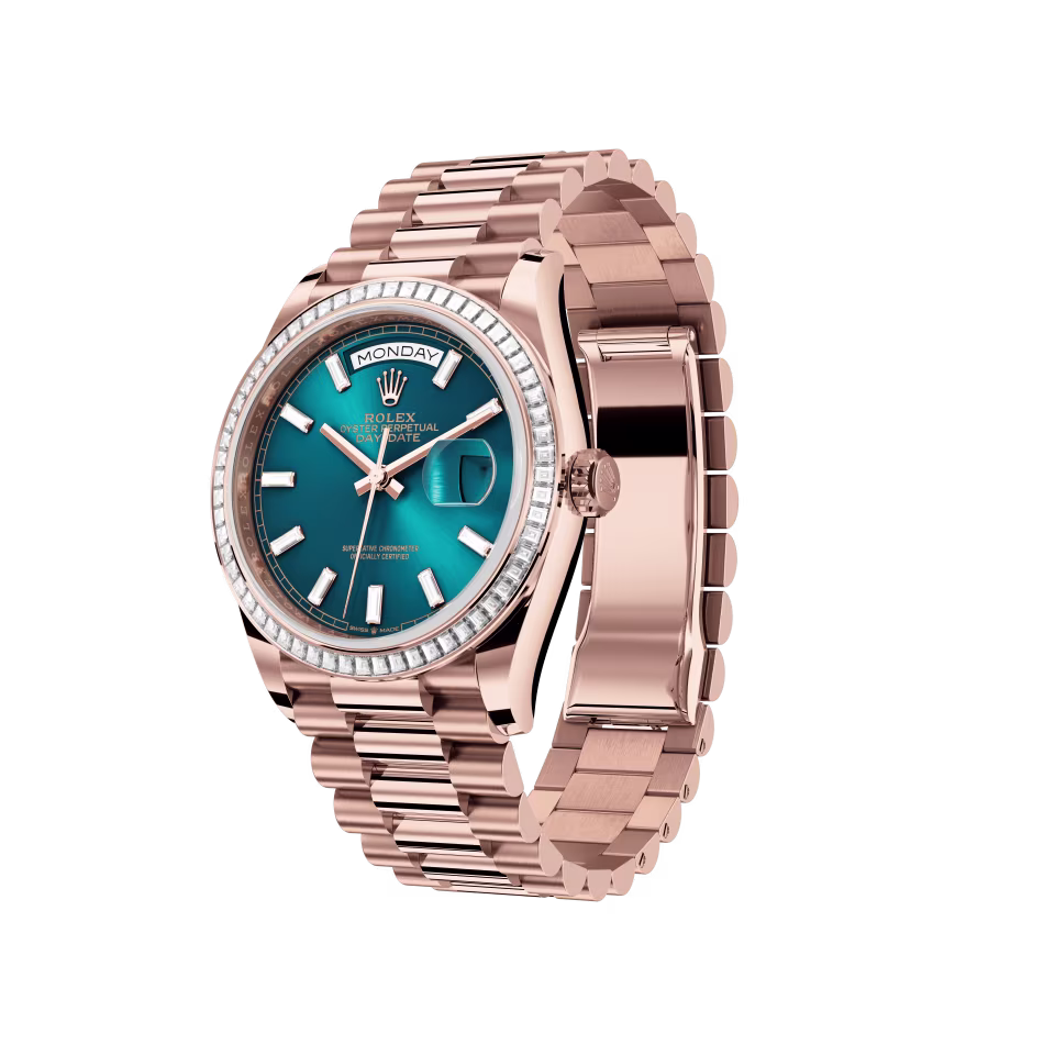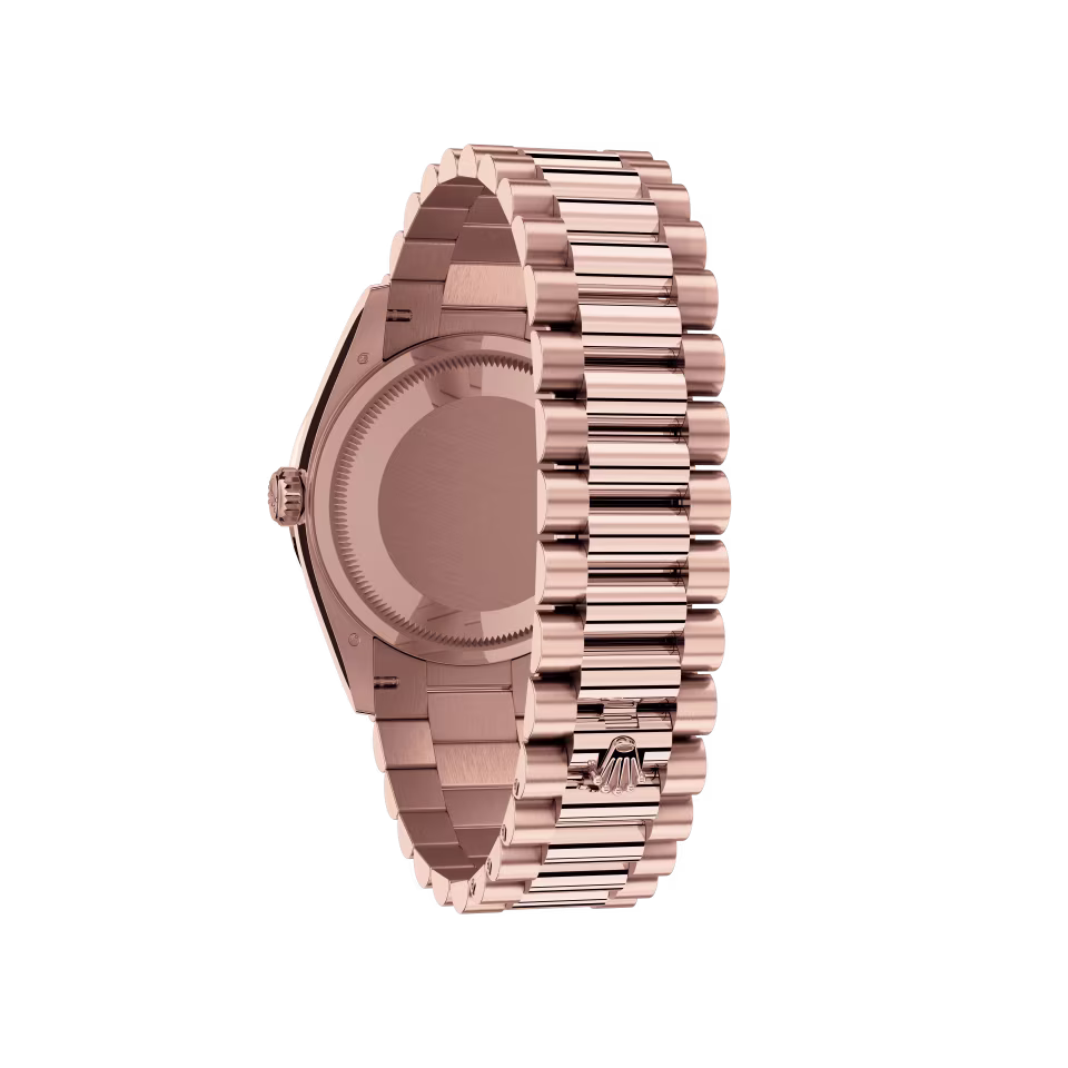 - Bracelet: President bracelet in Everose gold (semi-circular three-piece links)