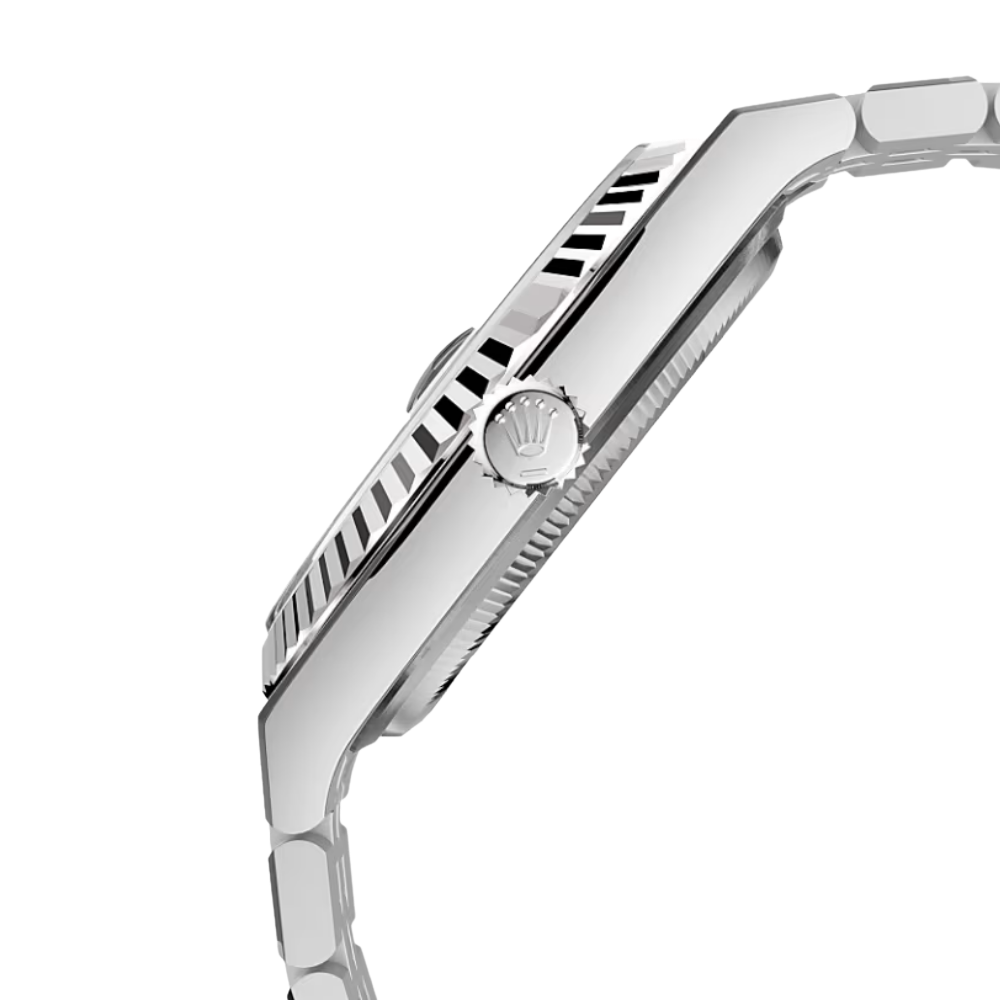 The Rolex Land-Dweller 40 mm Ref. 127334 in Oystersteel and white gold is a refined timepiece that balances sporty presence with elegant sophistication. Its 40 mm Oyster case is fitted with a distinctive fluted bezel in 18 kt white gold, giving the watch a signature brilliance that stands out both in casual wear and formal occasions. This model is powered by a next-generation automatic movement, combining reliability, precision, and modern versatility.